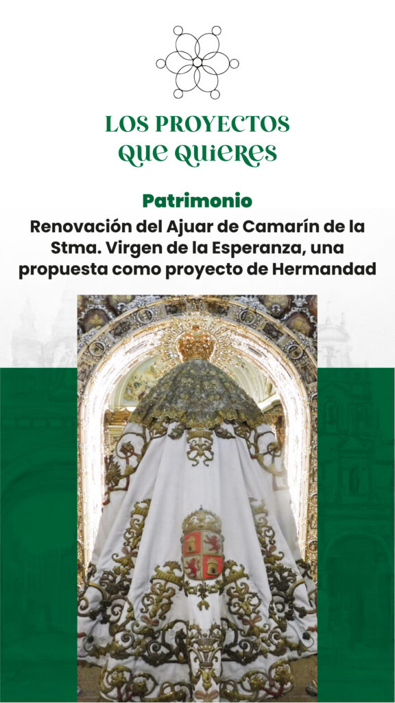 La renovación del ajuar de camarín de la Santísima Virgen de la Esperanza, una propuesta como proyecto de Hermandad