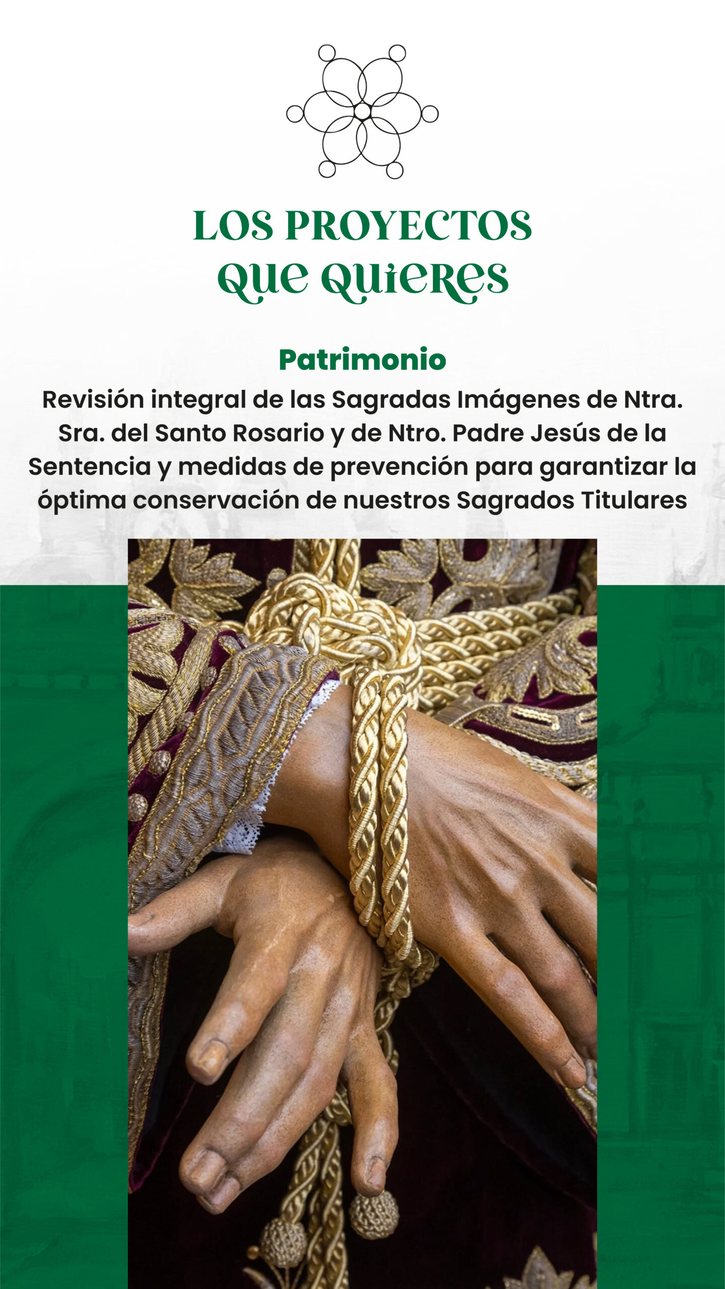 La candidatura encabezada por Fernando Fernández Cabezuelo ha presentado un ambicioso proyecto destinado a garantizar la óptima conservación de los Sagrados Titulares de la Hermandad de la Macarena: Nuestra Señora del Santo Rosario y Nuestro Padre Jesús de la Sentencia.
