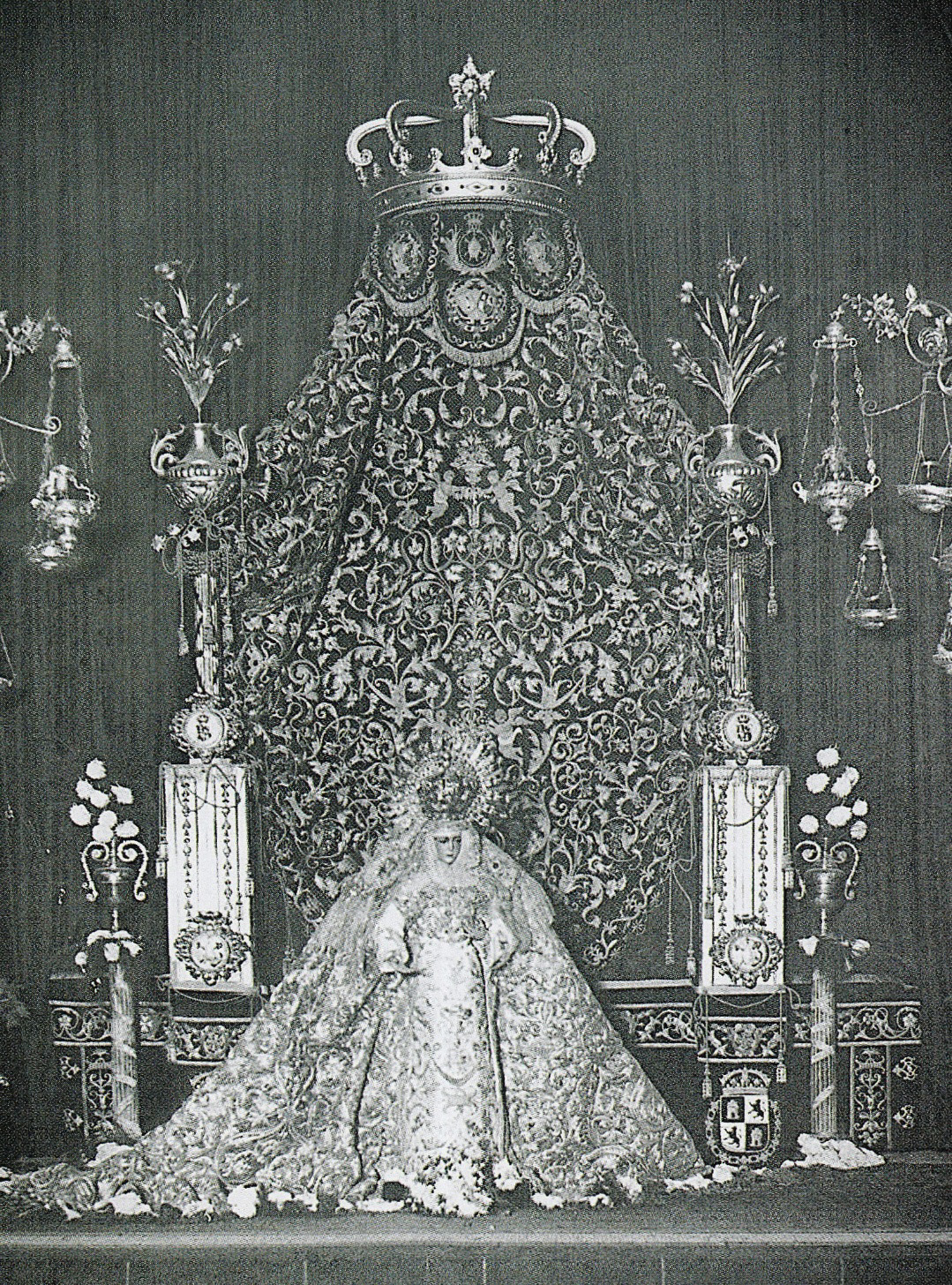 Una de las primeras muestras fotográficas del manto, que recoge el diseño original de Juan Manuel Rodríguez Ojeda, con una visión más tupida que la actual.